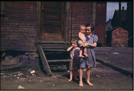How great is this? The kids stand out so much against the monochrome blah of their home. I love their bare footedness. And the sweetness of the group huddled together.