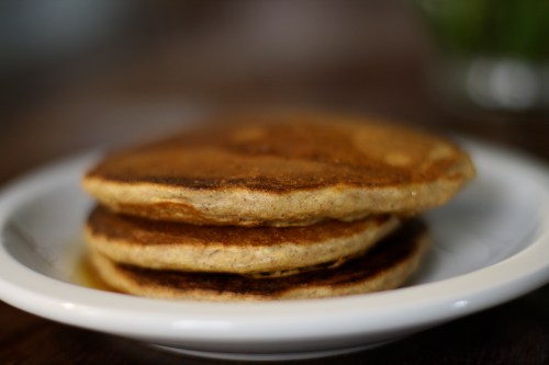 I thwarted that weekend lackadaisicalness today, though! On Thursday, I picked up the buttermilk and wheat germ required to complete this recipe for Eating Well’s buttermilk-oatmeal pancakes.